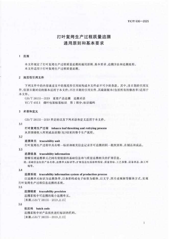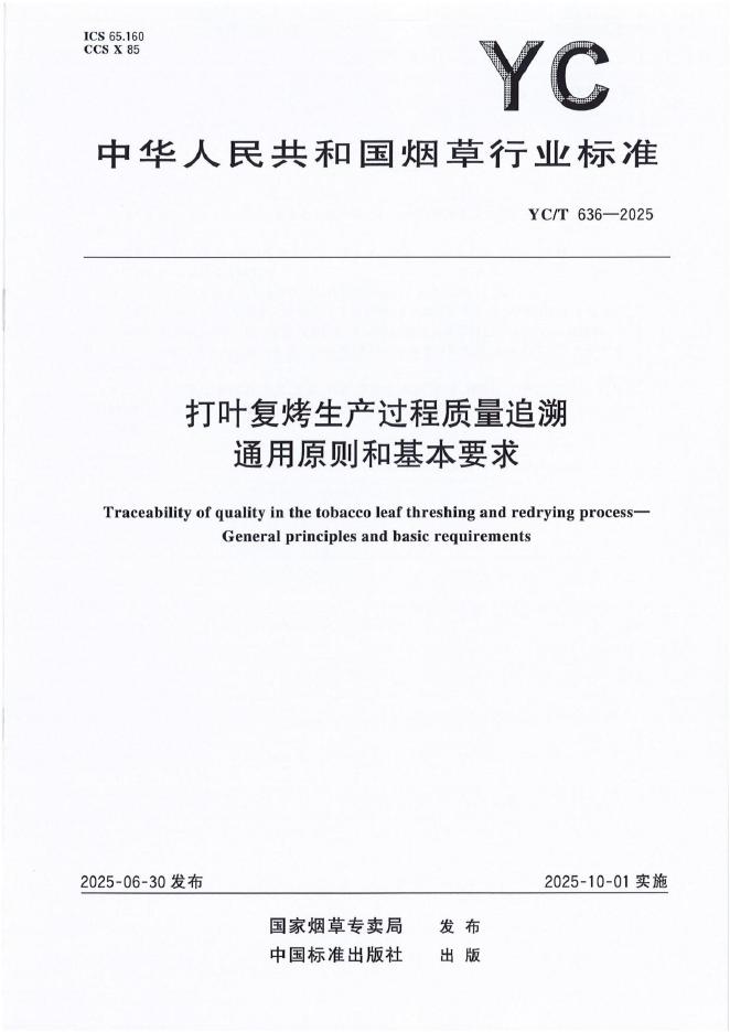 YC/T 636-2025 打叶复烤生产过程质量追溯通用原则和基本要求
