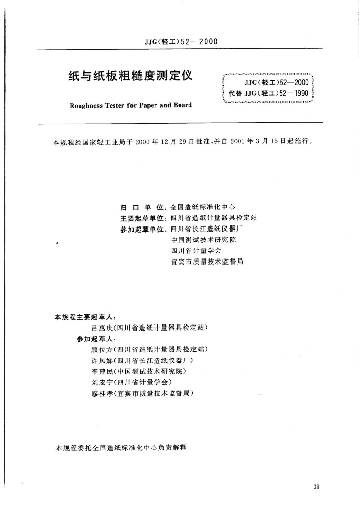 JJG 52-2000 纸与纸板粗糙度测定仪