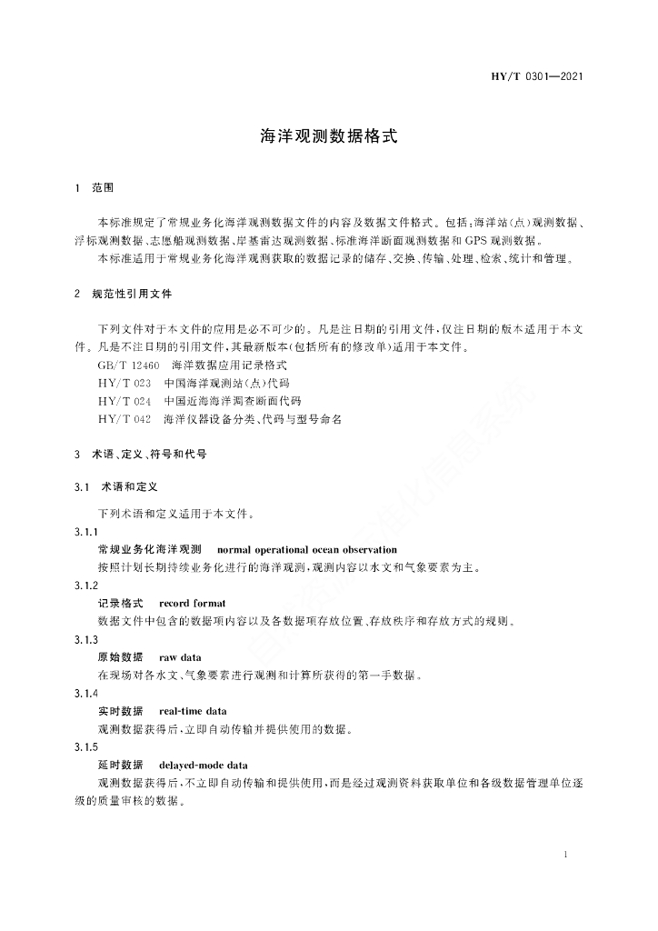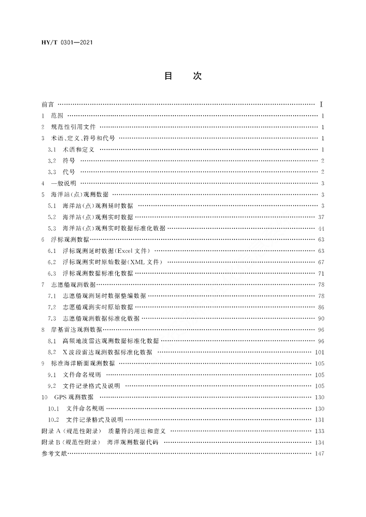 HY/T 0301-2021 海洋观测数据格式