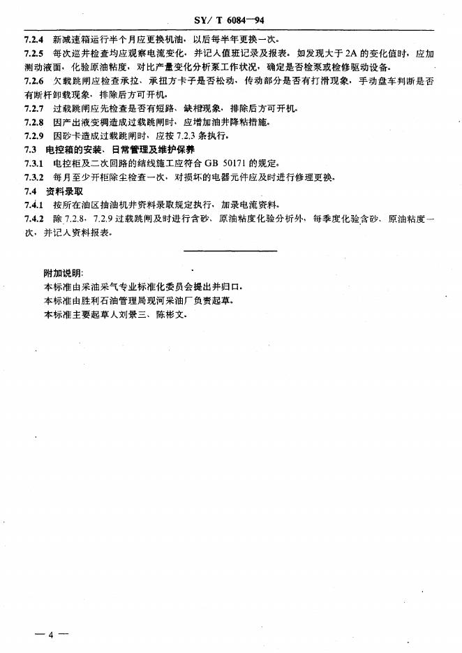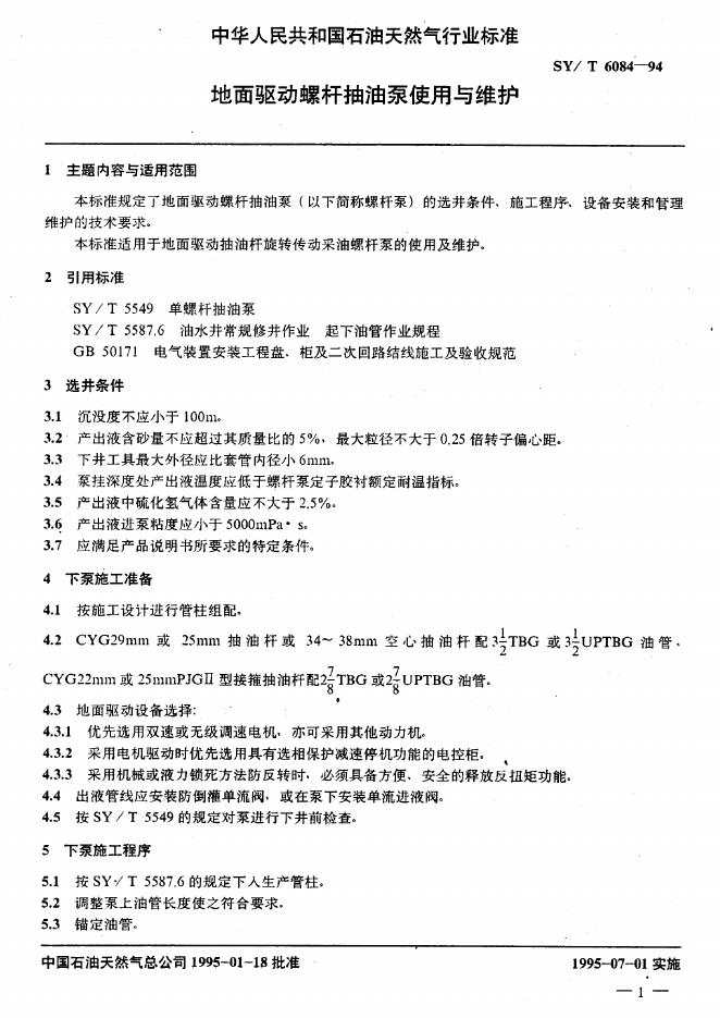 SY/T 6084-1994 地面驱动螺杆抽油泵使用与维护