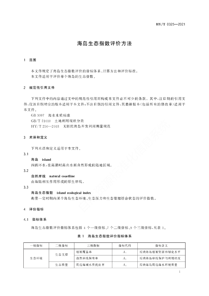 HY/T 0325-2021 海岛生态指数评价方法