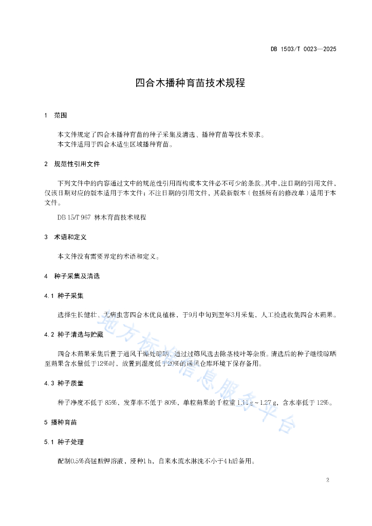 DB1503/T 0023-2025 四合木播种育苗技术规程