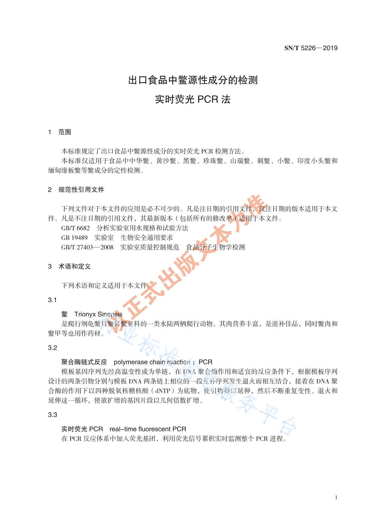 SN/T 5226-2019 出口食品中鳖源性成分的检测 实时荧光PCR方法