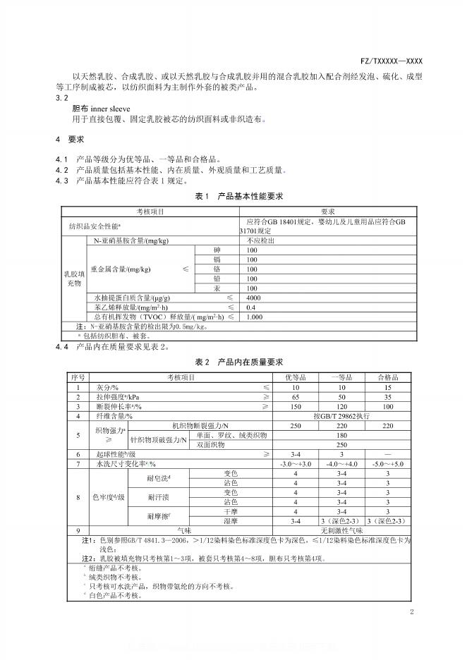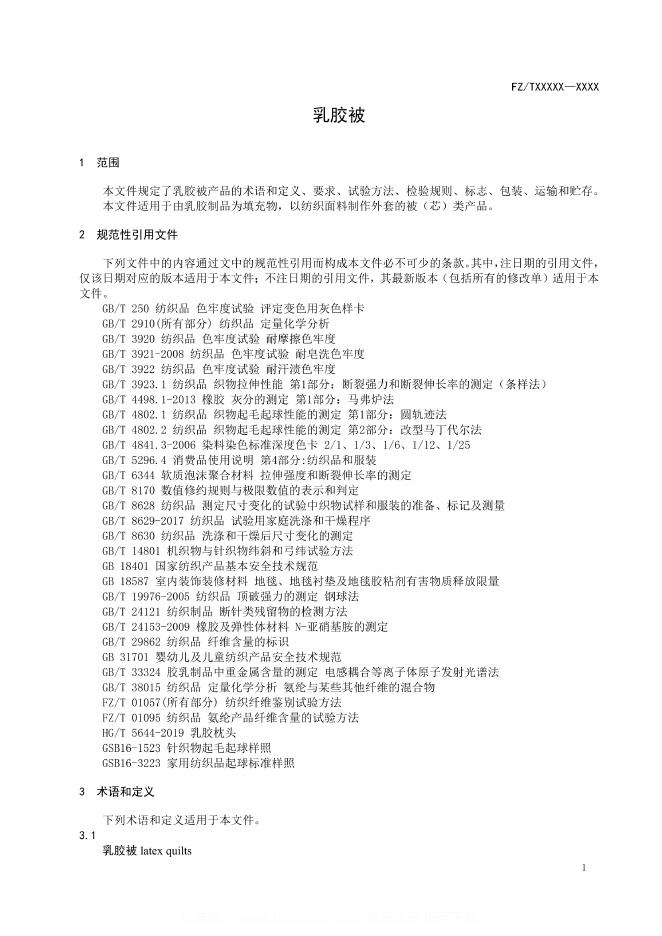 FZ/T 62046-2023 乳胶被
