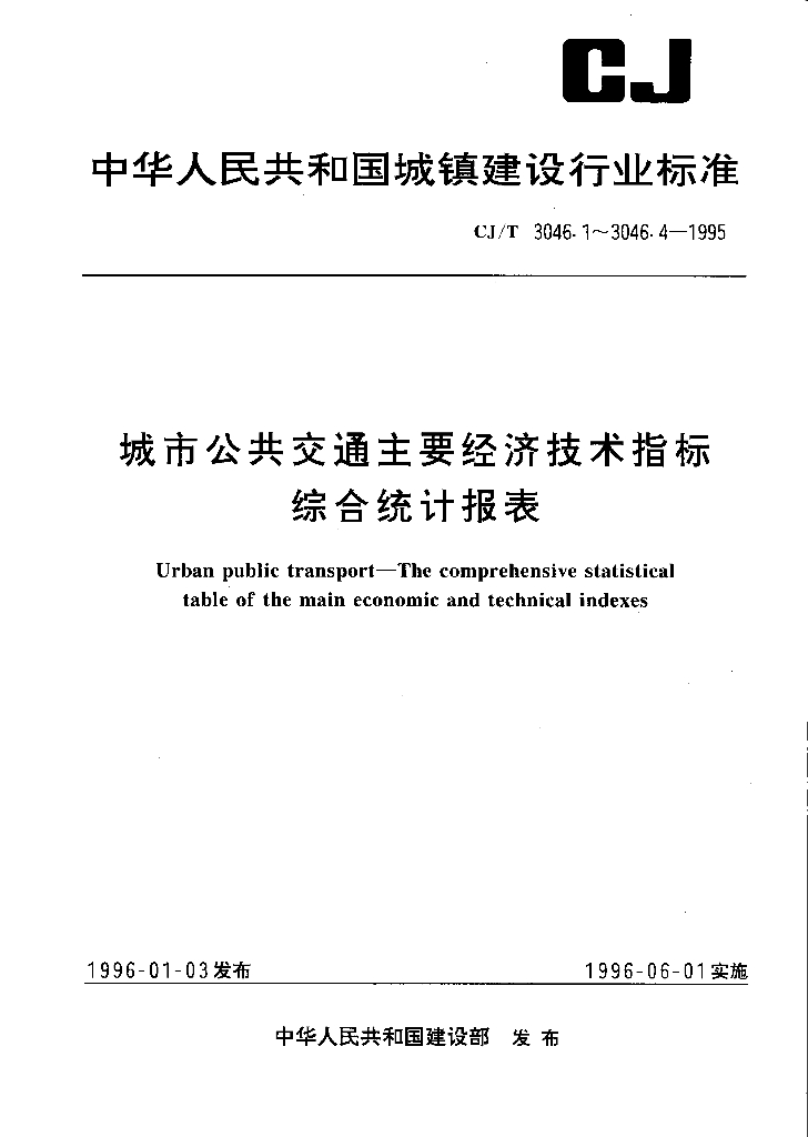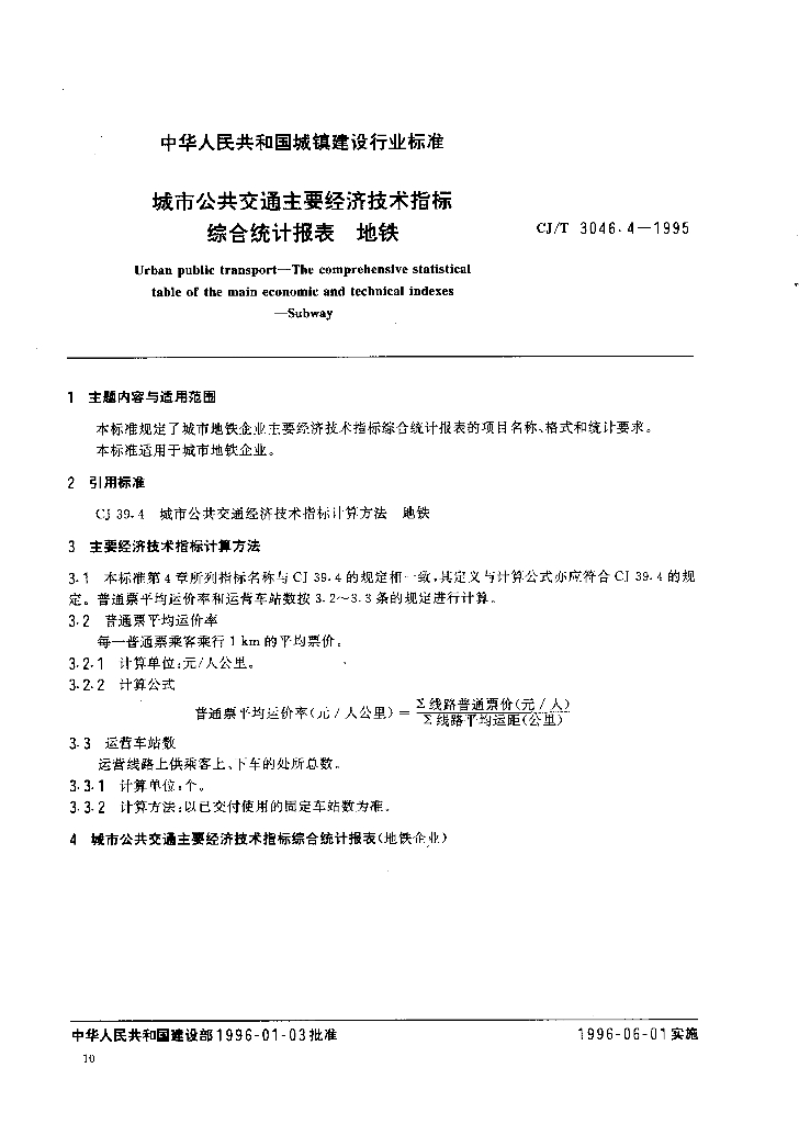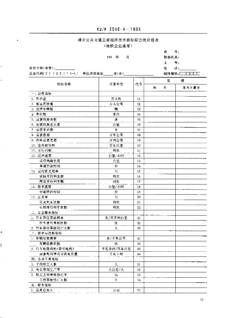 CJ/T 3046.4-1995 城市公共交通主要经济技术指标综合统计报表地铁