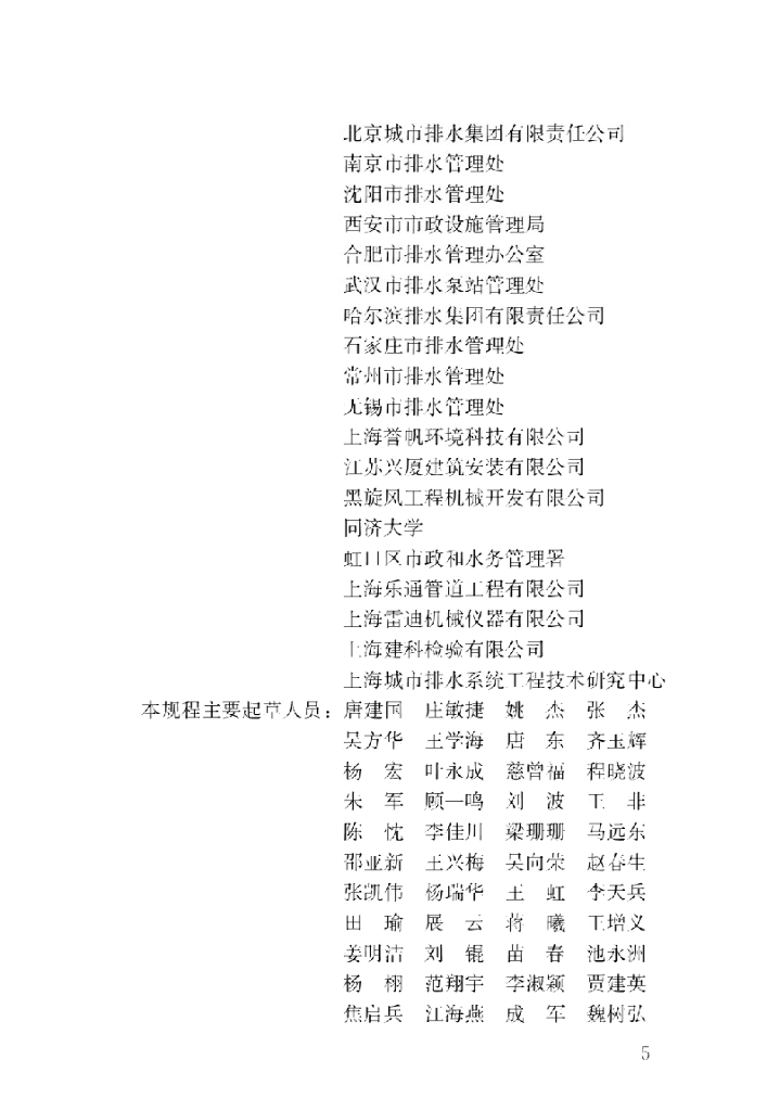 上海市排水管理处、江苏通州四建集团有限公司、上海市城市排水有限公司、天津市排水管理处、广州市排水设施管理中心、重庆市市政设施管理局、北京城市排水集团有限责任公司、南京市排水管理处、沈阳市排水管理处、西安市市政设施管理局、合肥市排水管理办公室、武汉市排水泵站管理处、哈尔滨排水集团有限责任公司、石家庄市排水管理处、常州市排水管理处、无锡市排水管理处、上海誉帆环境科技有限公司、江苏兴厦建筑安装有限公司、黑旋风工程机械开发有限公司、同济大学、虹口区市政和水务管理署、上海乐通管道工程有限公司、上海雷迪机械仪器有限公