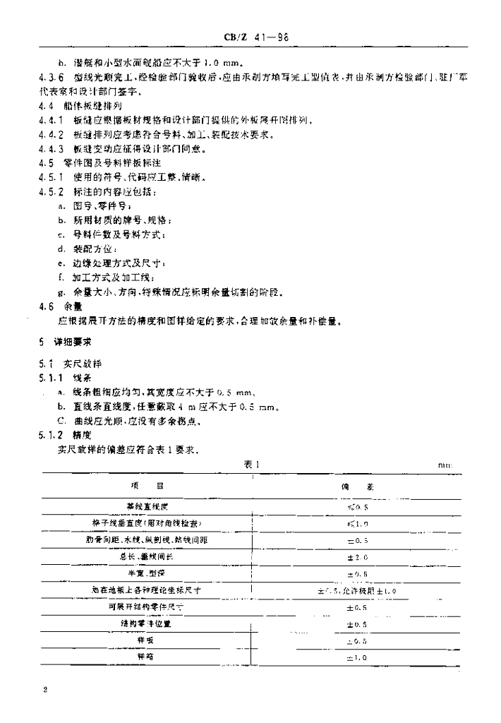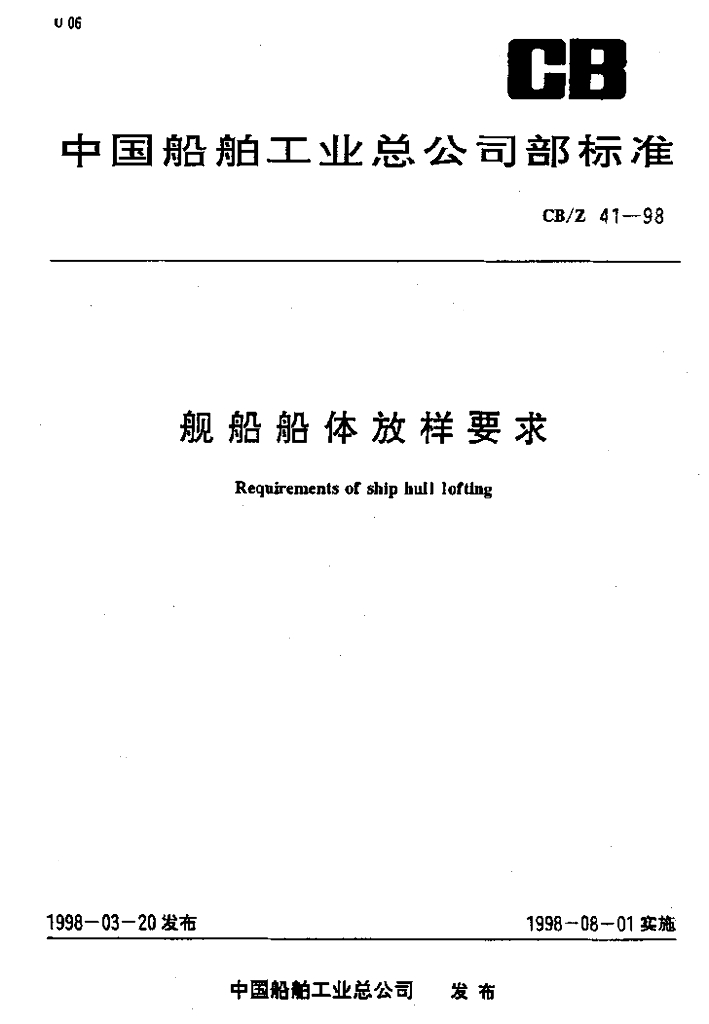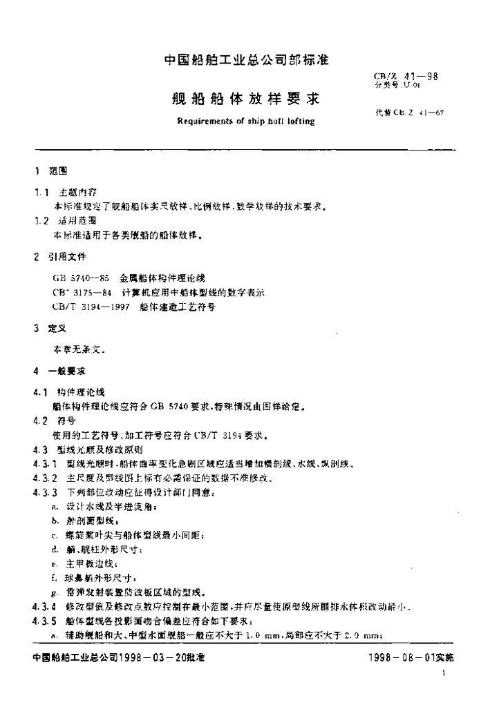 CB/Z 41-1998 舰船船体放样要求