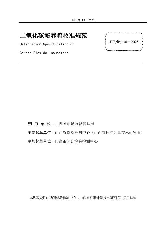 JJF(晋)138-2025 二氧化碳培养箱校准规范