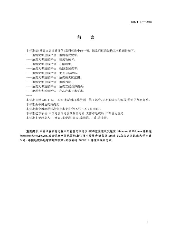 DB/T 77-2018 地震灾害遥感评估 地震烈度