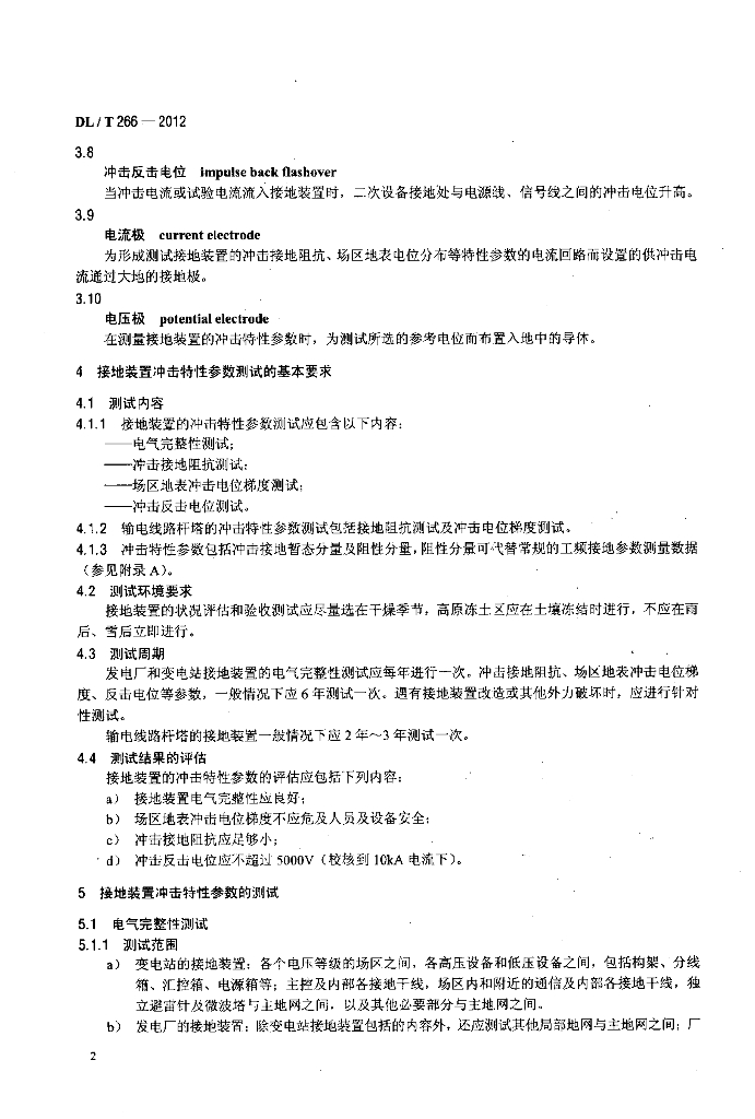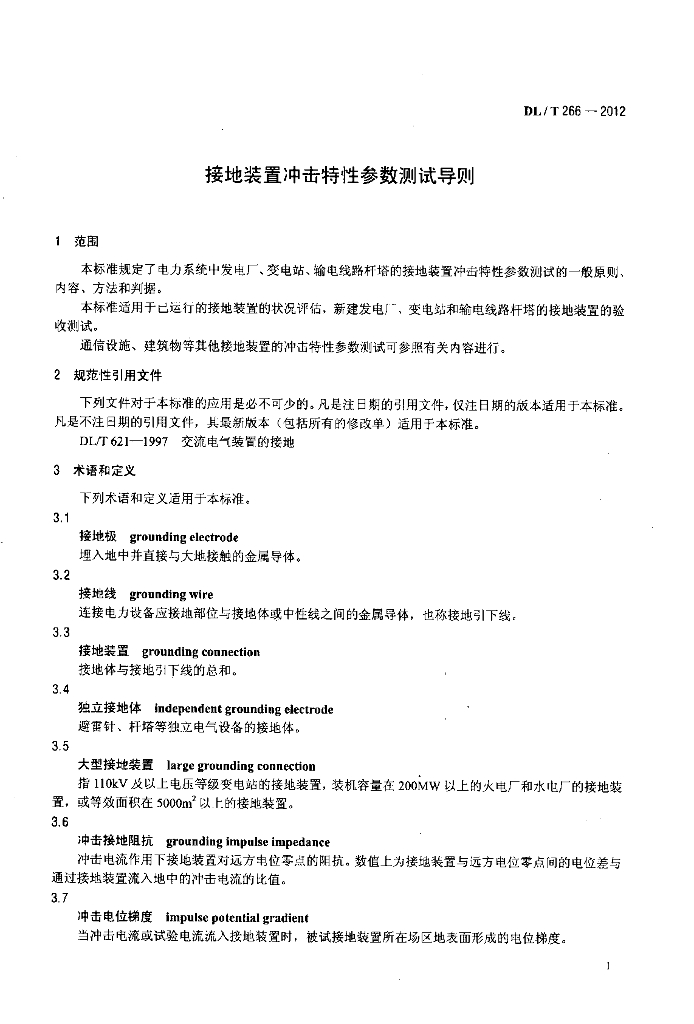DL/T 266-2012 接地装置冲击特性参数测试导则