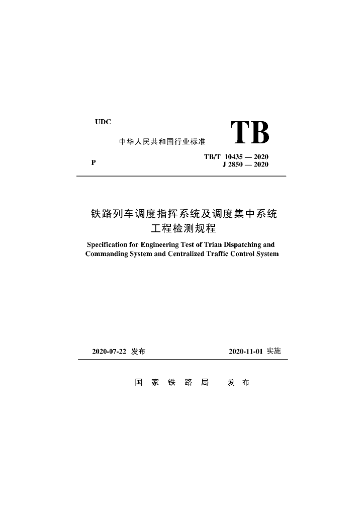 TB/T 10435-2020 铁路列车调度指挥系统及调度集中系统工程检测规程