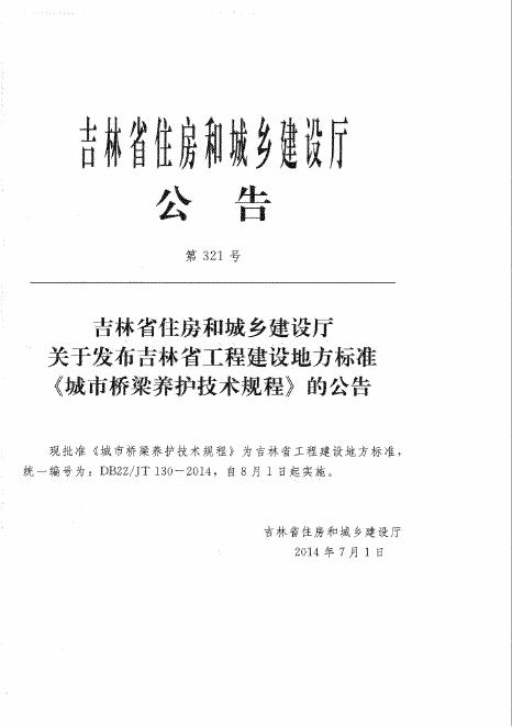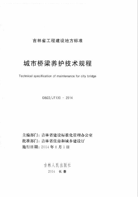 DB22/JT 130-2014 城市桥梁养护技术规程