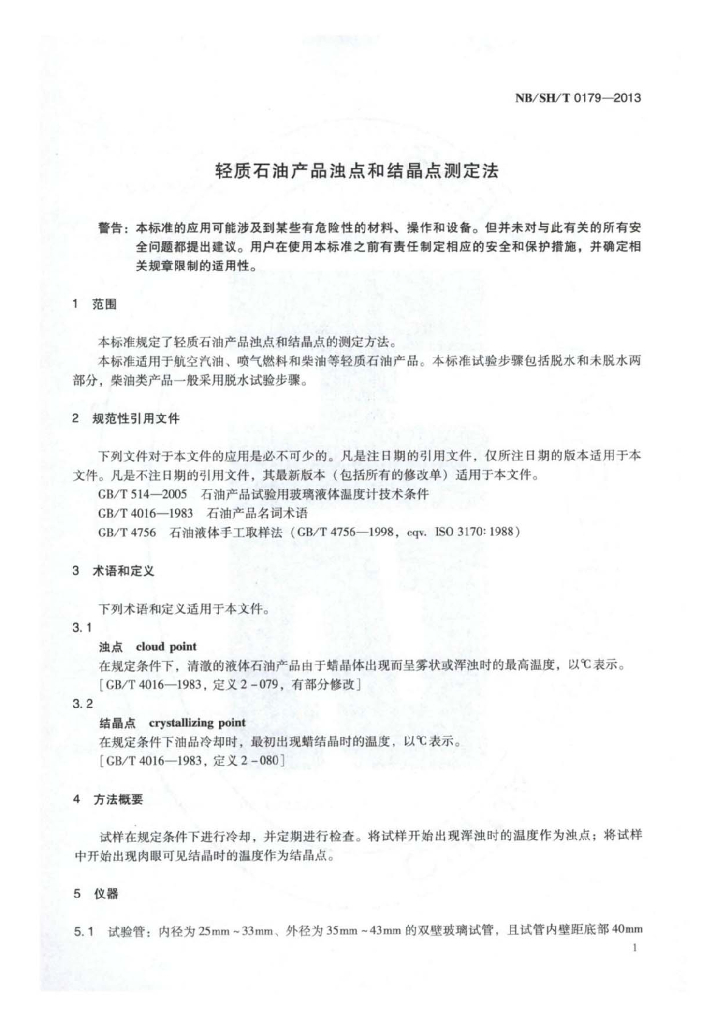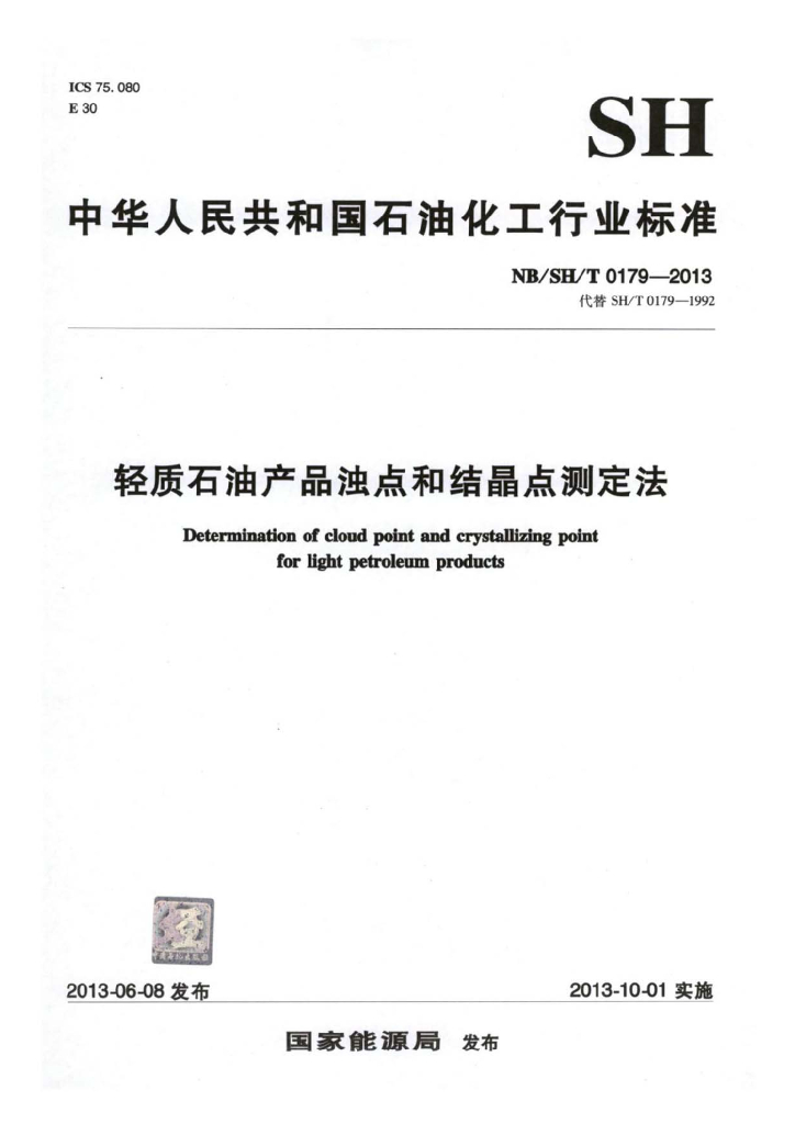 NB/SH/T 0179-2013 轻质石油产品浊点和结晶点测定法