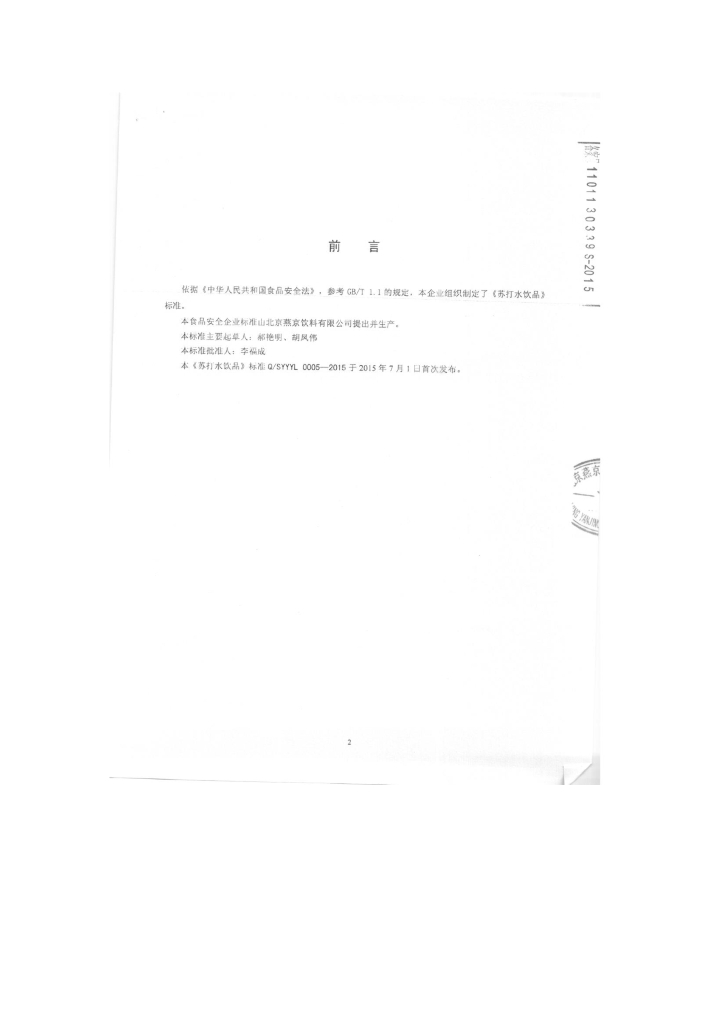 Q/SYYYL 0005-2015 北京燕京饮料有限公司 苏打水饮品