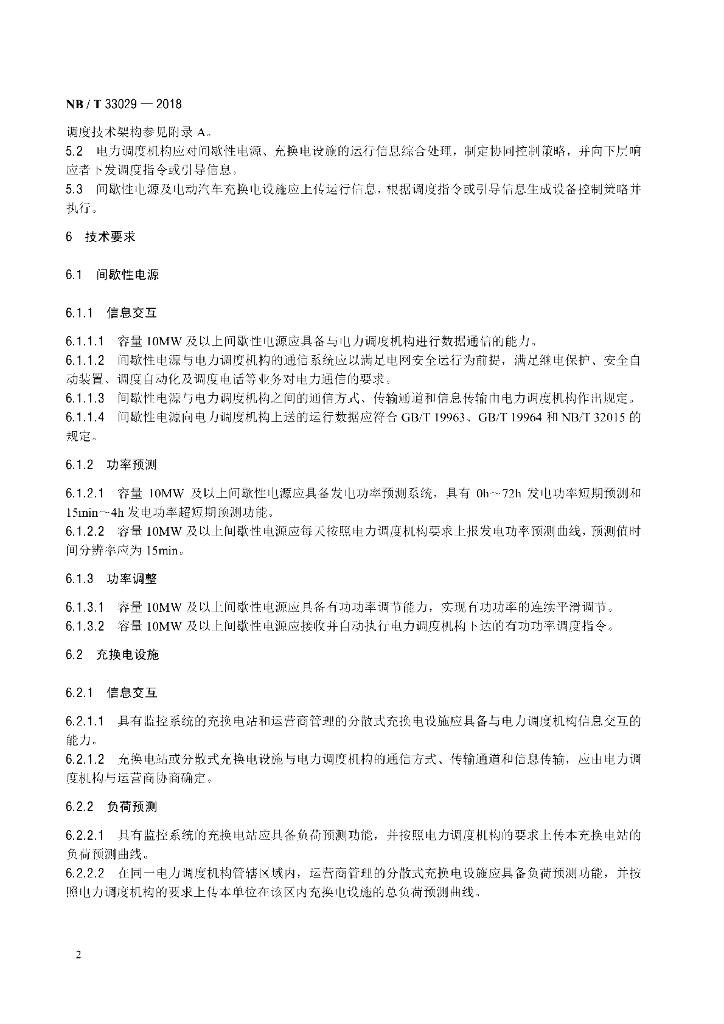 NB/T 33029-2018 电动汽车充电与间歇性电源协同调度技术导则