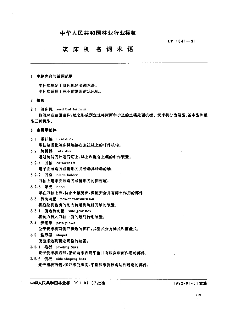 LY 1041-1991 筑床机名词术语