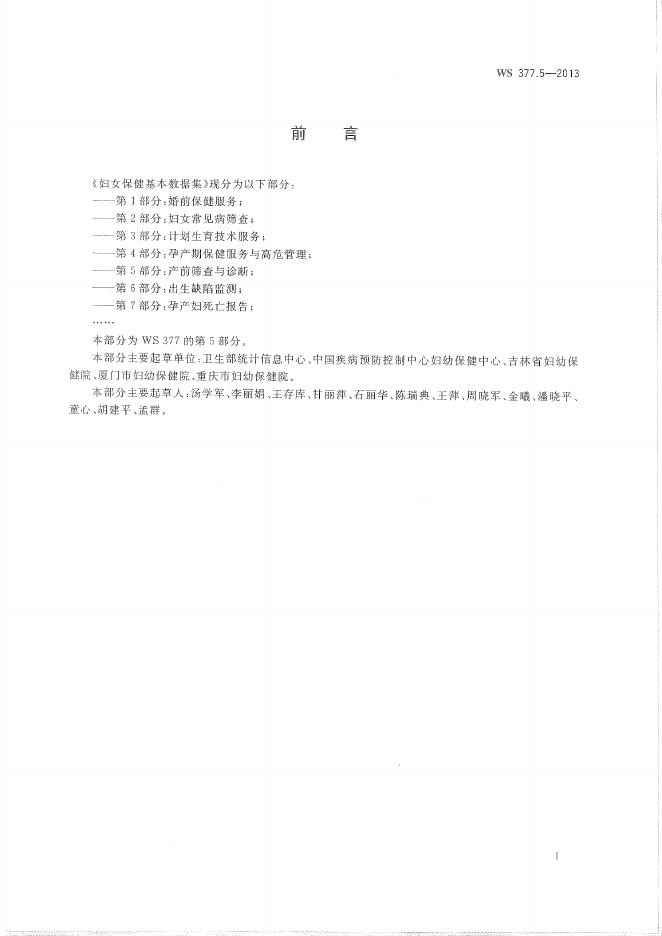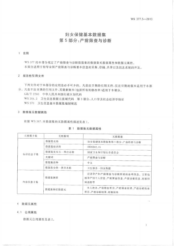WS 377.5-2013 妇女保健基本数据集 第5部分:产前筛查与诊断