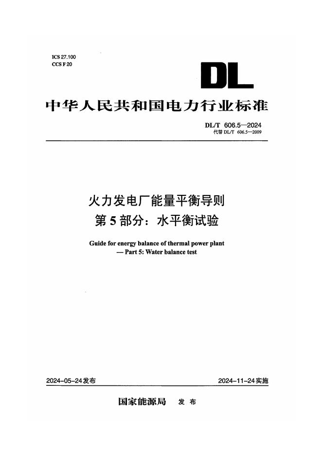 DL/T 606.5-2024 火力发电厂能量平衡导则 第5部分:水平衡试验