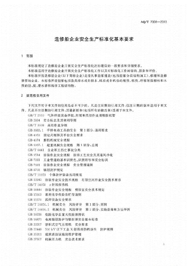 AQ/T 7008-2013 造修船企业安全生产标准化基本要求