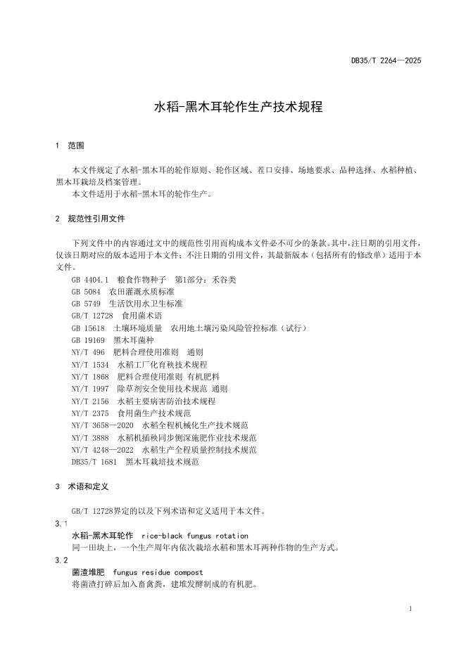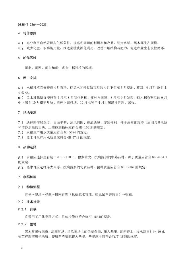 DB35/T 2264-2025 水稻-黑木耳轮作生产技术规程