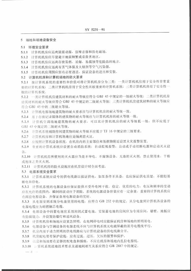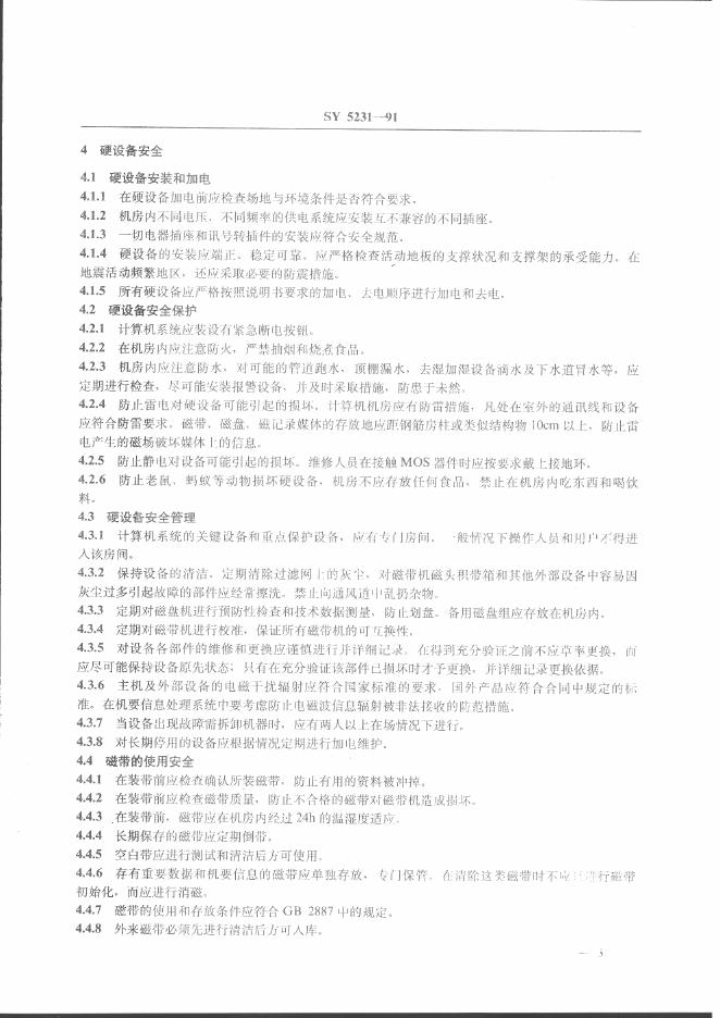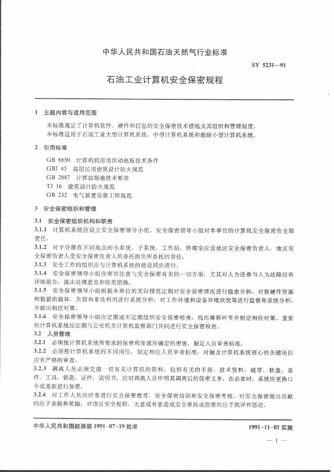 SY 5231-1991 石油工业计算机安全保密规程