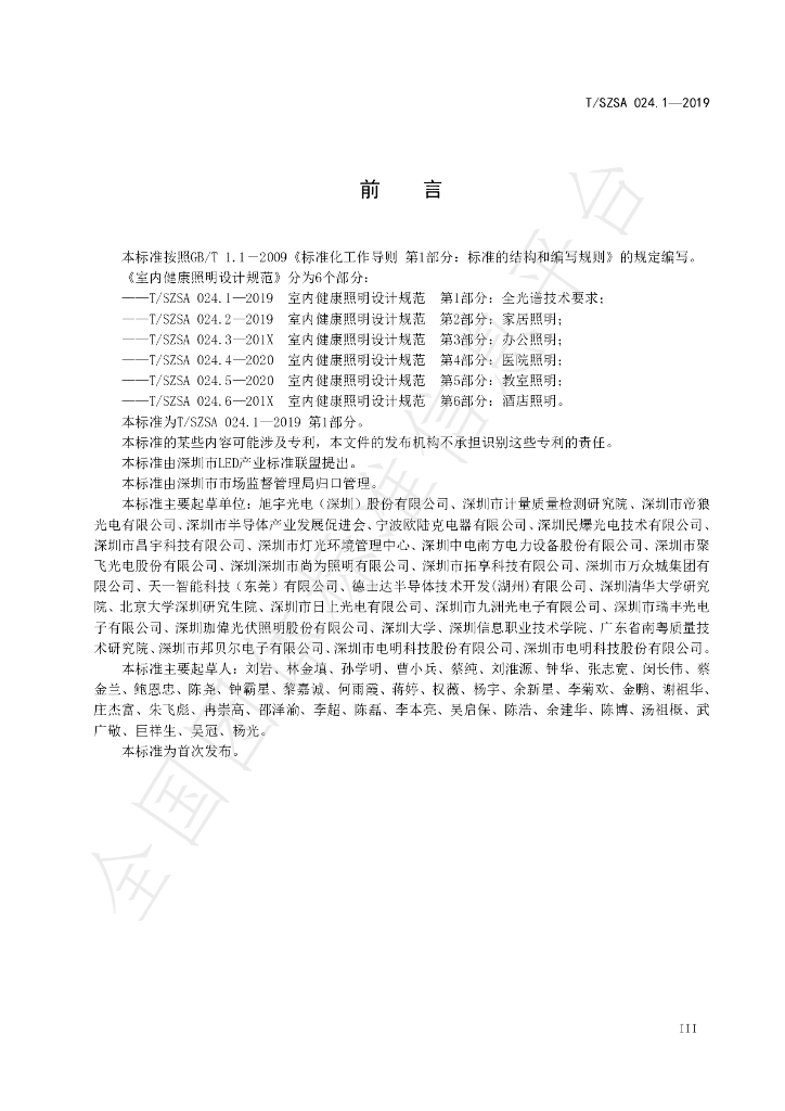 旭宇光电(深圳)股份有限公司、深圳市计量质量检测研究院、深圳市帝狼光电有限公司、深圳市半导体产业发展促进会、宁波欧陆克电器有限公司、深圳民爆光电技术有限公司、深圳市昌宇科技有限公司、深圳市灯光环境管理中心、深圳中电南方电力设备股份有限公司、深圳市聚飞光电股份有限公司、深圳深圳市尚为照明有限公司、深圳市拓享科技有限公司、深圳市万众城集团有限公司、天一智能科技(东莞)有限公司、德士达半导体技术开发(湖州)有限公司、深圳清华大学研究院、北京大学深圳研究生院、深圳市日上光电有限公司、深圳市九洲光电子有限公司、深圳