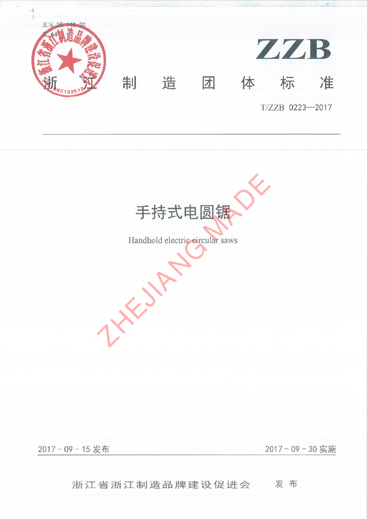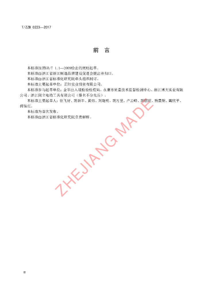 本标准由浙江省标准化研究院牵头组织制订。、本标准主要起草单位:正阳实业投资有限公司。、本标准参与起草单位:金华出入境检验检疫局、永康市质量技术监督检测中心、浙江博大实业有限公司、浙江闽立电动工具有限公司(排名不分先后)。