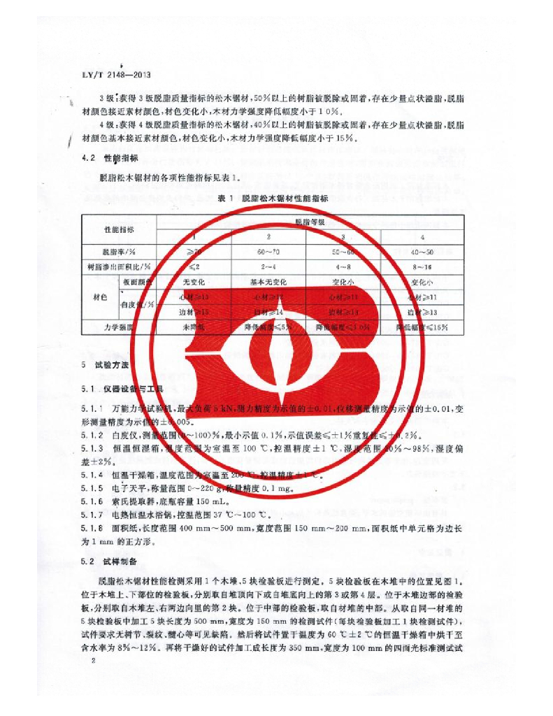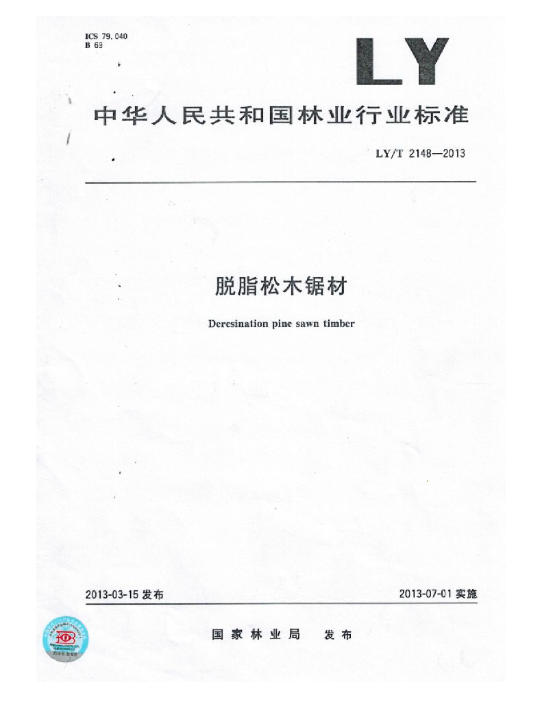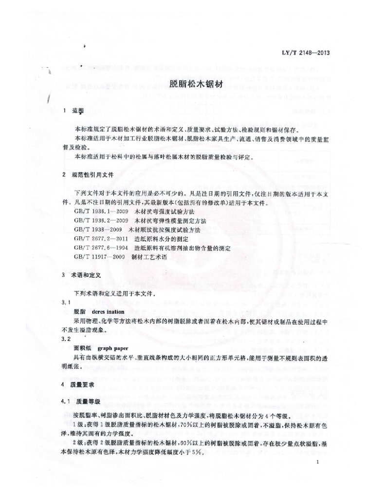 LY/T 2148-2013 脱脂松木锯材