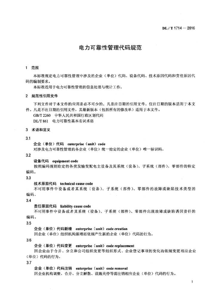 DL/T 1714-2016 电力可靠性管理代码规范