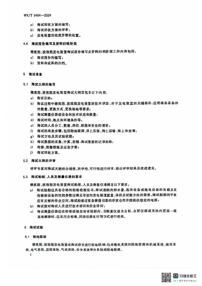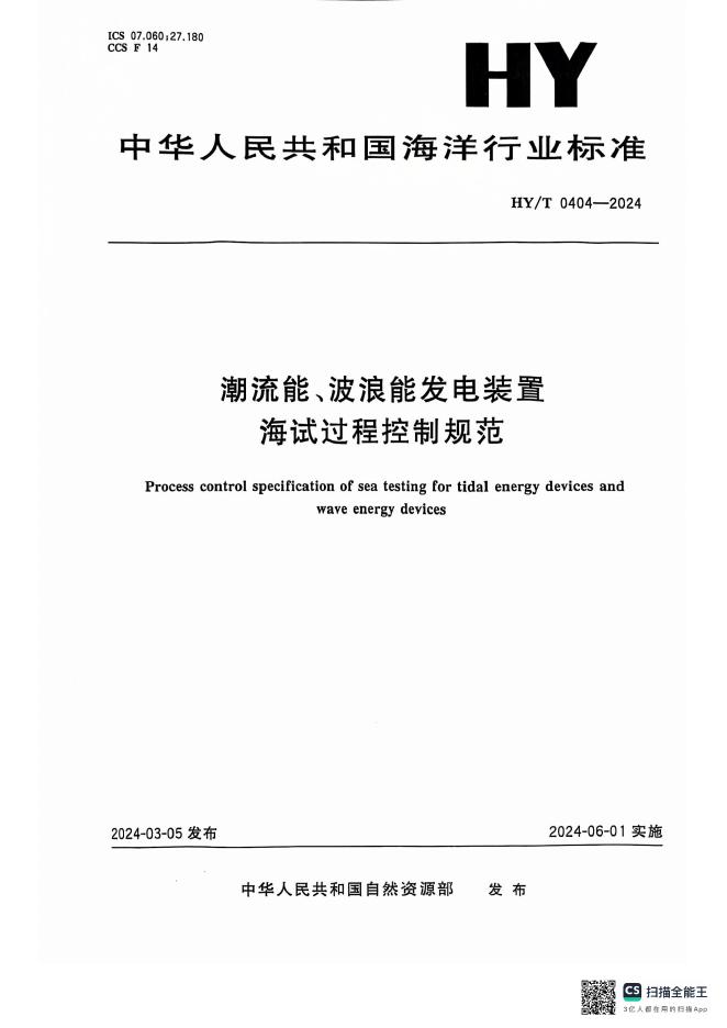 HY/T 0404-2024 潮流能、波浪能发电装置海试过程控制规范