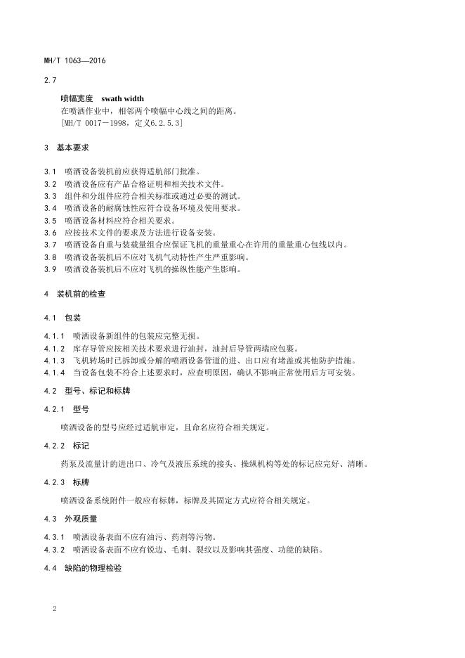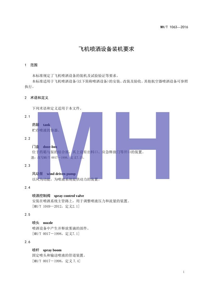 MH/T 1063-2016 飞机喷洒设备装机要求