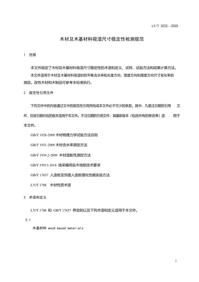 LY/T 3222-2020 木材及木基材料吸湿尺寸稳定性检测规范