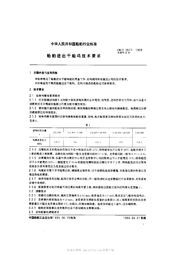 CB/T 3677-1995 船舶进出干船坞技术要求