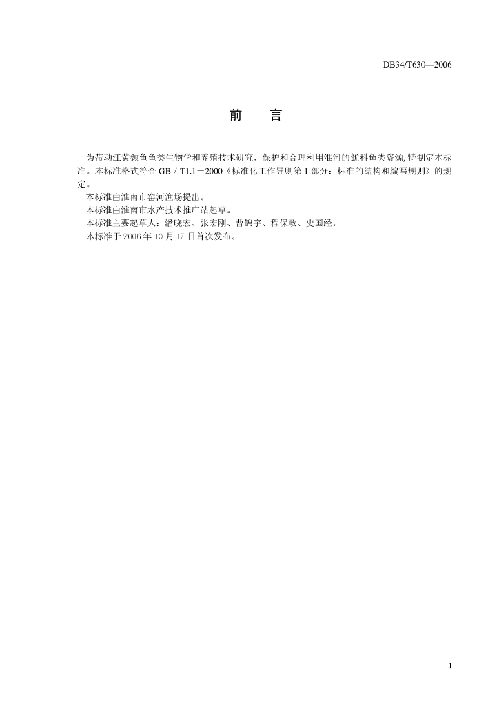 DB34/T 630-2006 无公害江黄颡鱼成鱼池塘养殖技术操作规范