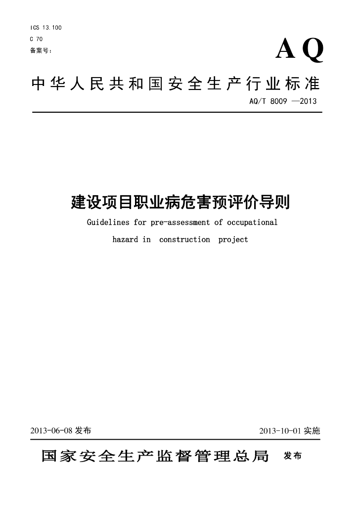 AQ/T 8009-2013 建设项目职业病危害预评价导则
