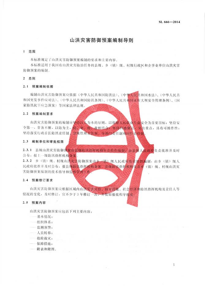 SL/T 666-2014 山洪灾害防御预案编制导则