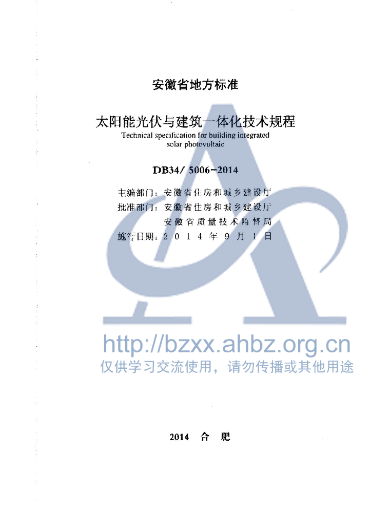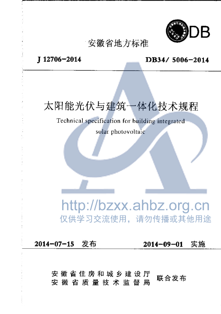 DB34/ 5006-2014 太阳能光伏与建筑一体化技术规程