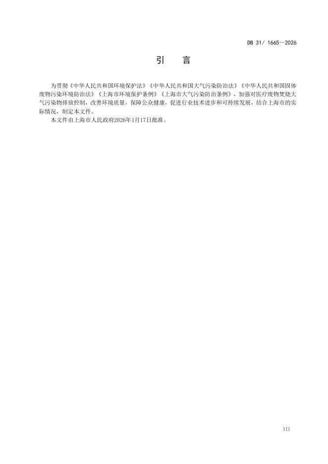 DB31/ 1665-2026 医疗废物焚烧大气污染物排放标准