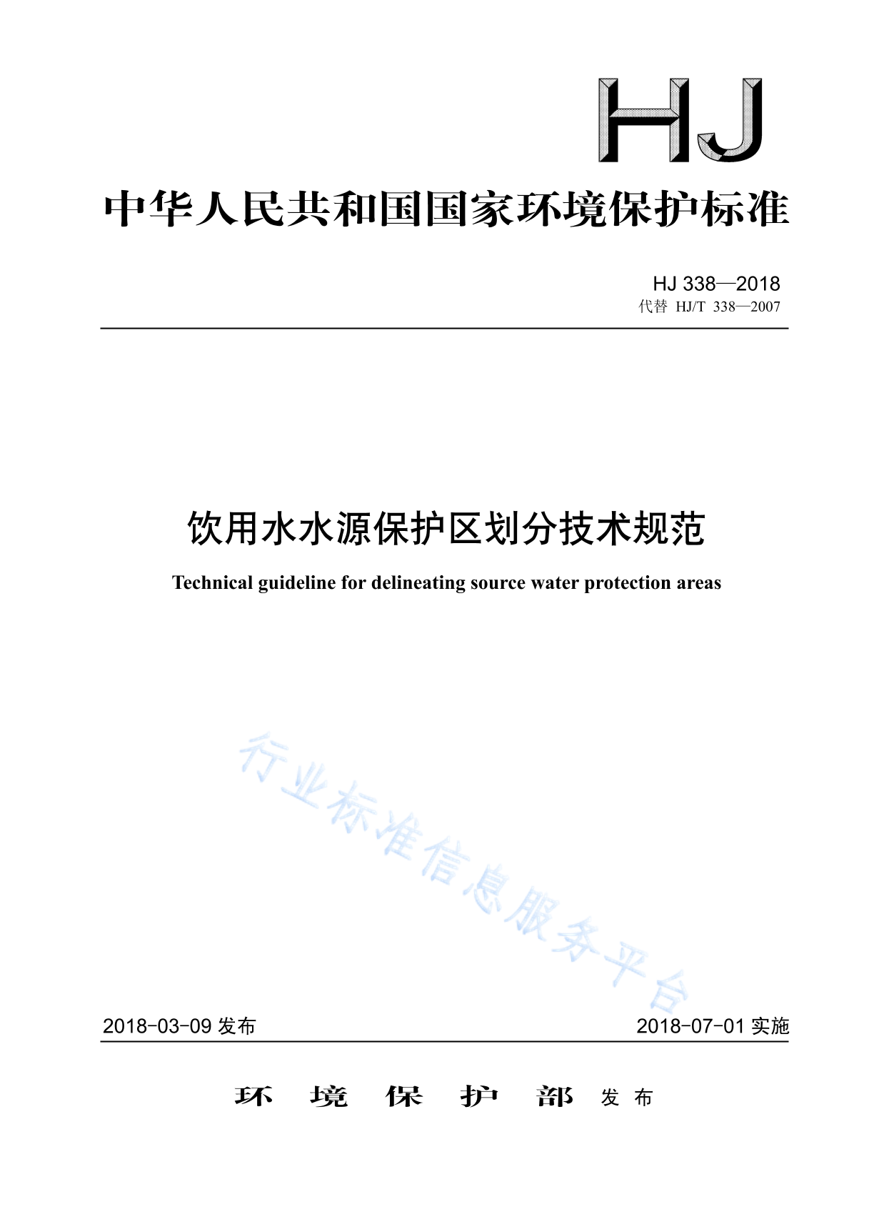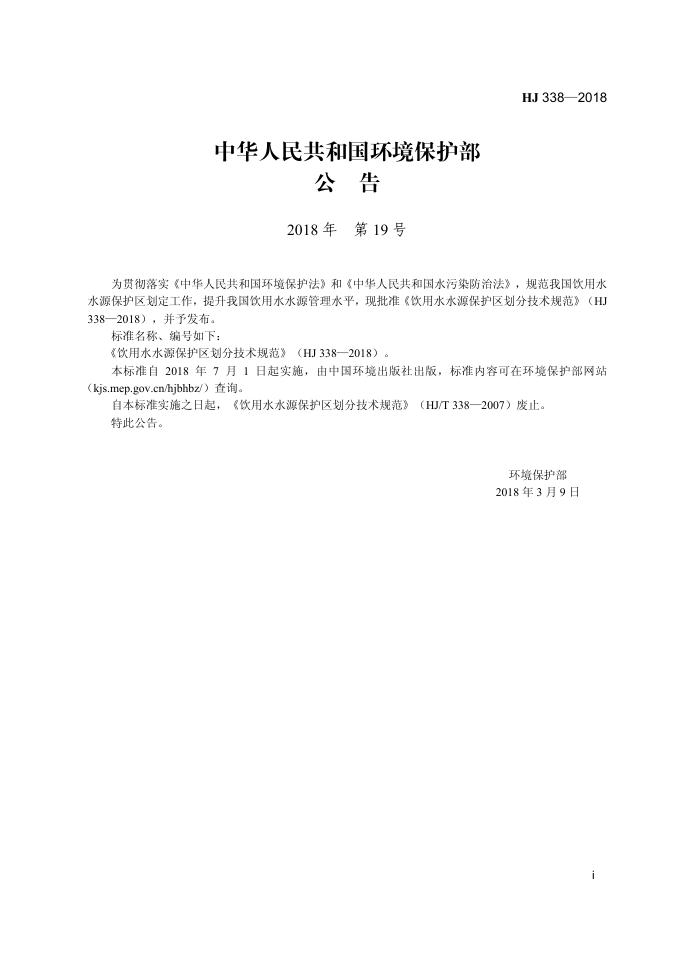 HJ 338-2018 饮用水水源保护区划分技术规范