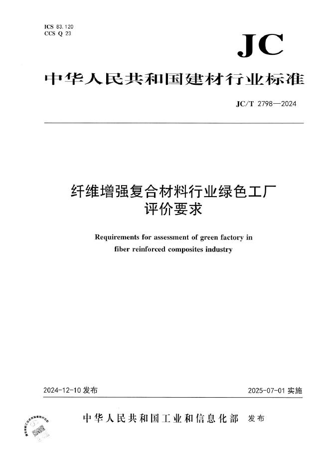 JC/T 2798-2024 纤维增强复合材料行业绿色工厂评价要求