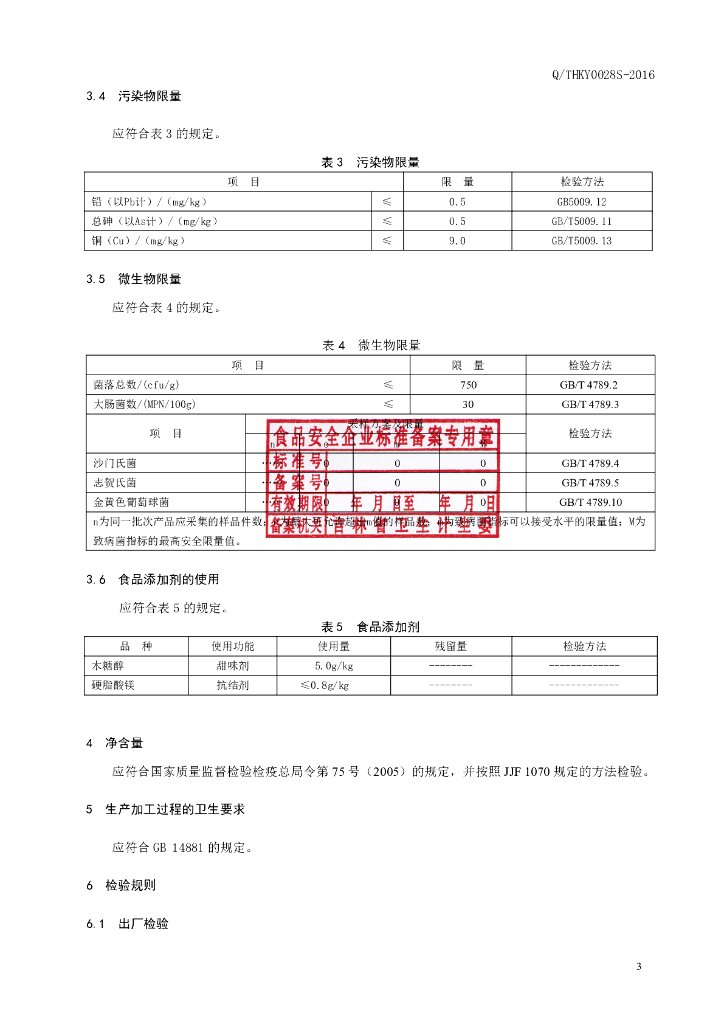 Q/THKY 0028S-2016 通化康元生物科技有限公司 雪蛤心片(压片糖果)