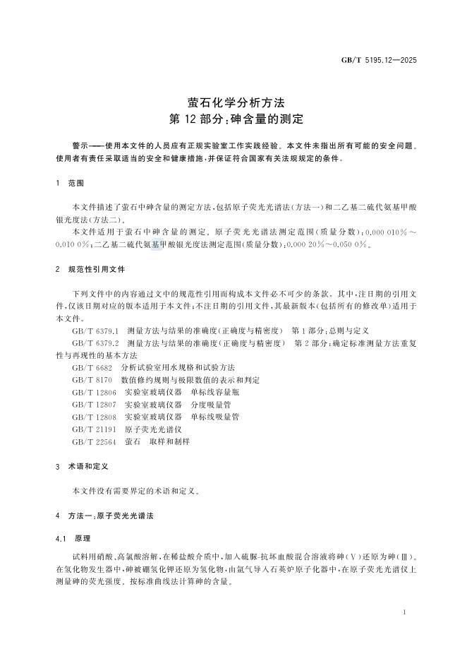 GB/T 5195.12-2025 萤石化学分析方法 第12部分:砷含量的测定