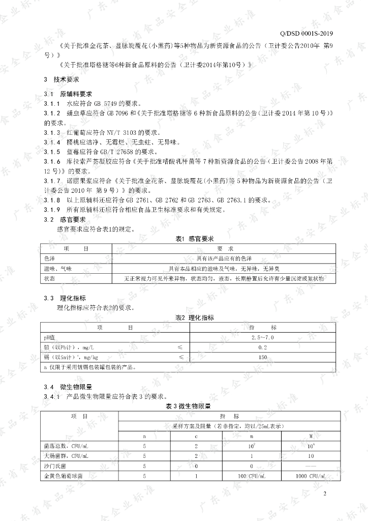 Q/DSD 0001S-2019 蛹虫草酵素饮料