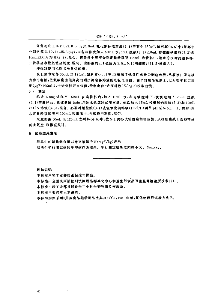 QB 1035.3-1991 食品添加剂 三聚磷酸钠氟化物含量的测定