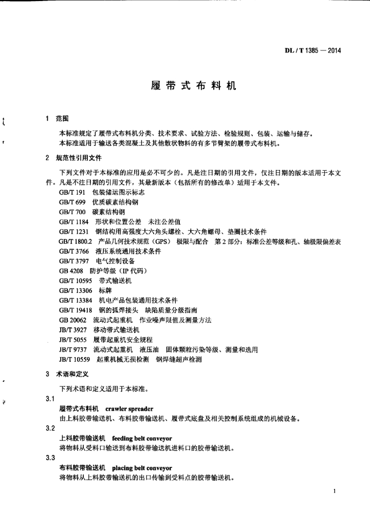 DL/T 1385-2014 履带式布料机