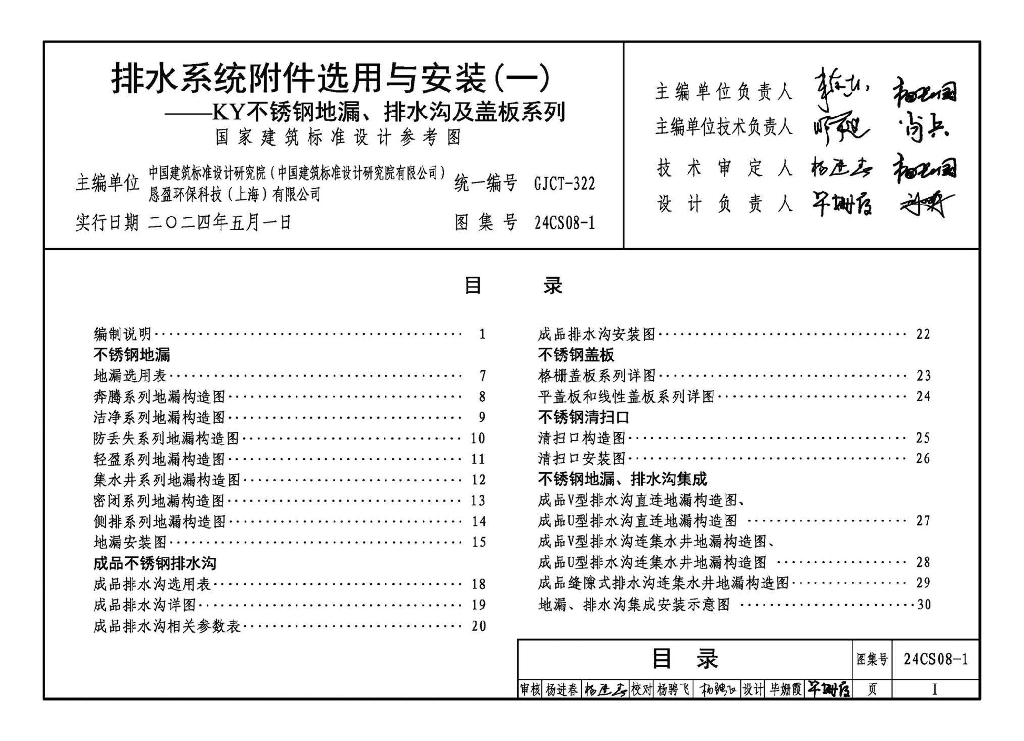 24CS08-1 排水系统附件选用与安装(一)——KY不锈钢地漏、排水沟及盖板系列参考图集