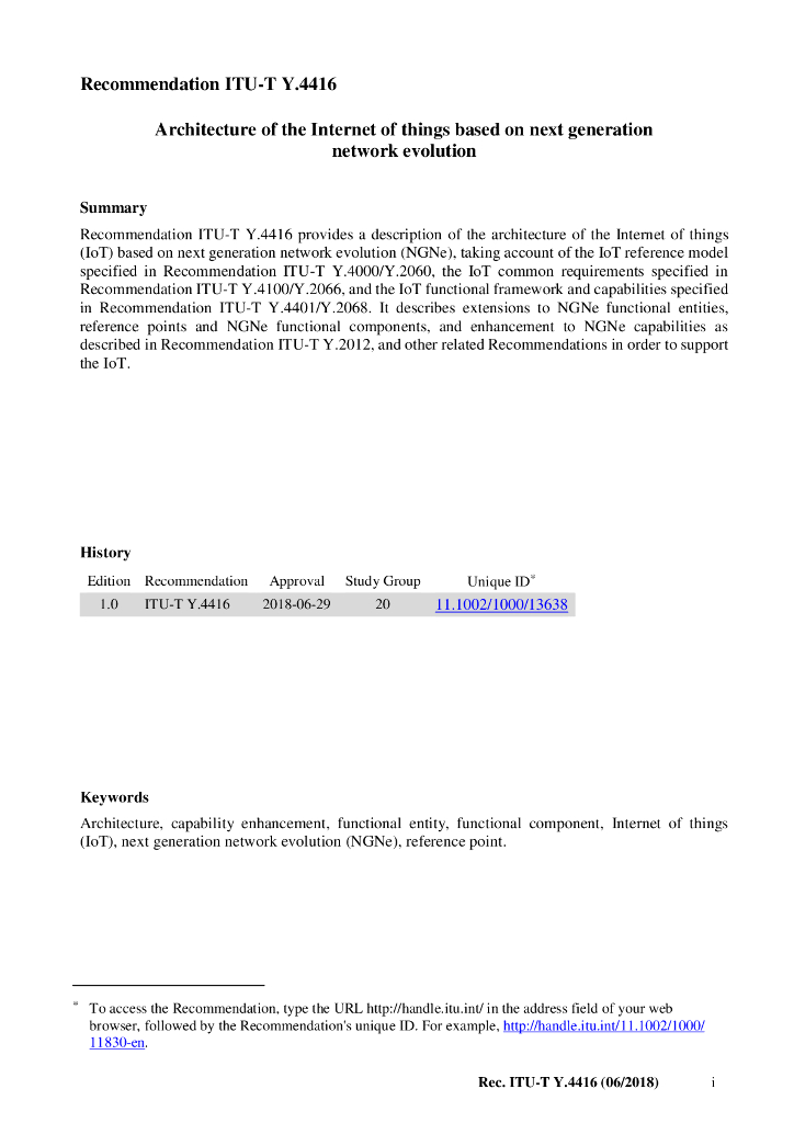 ITU-T Y.4416-2018 基于下一代网络演进的物联网体系结构