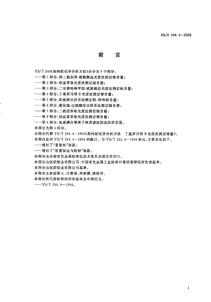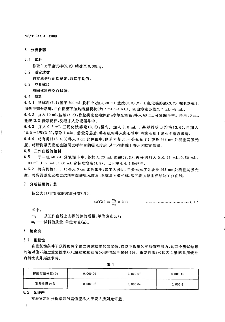 YS/T 244.4-2008 高纯铝化学分析方法 第4部分:丁基罗丹明B光度法测定镓含量