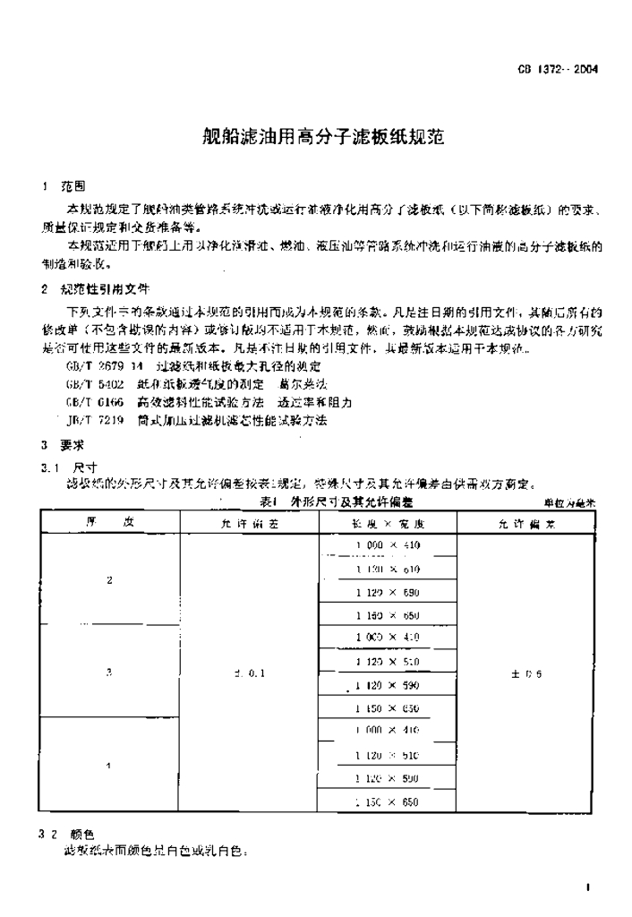 CB 1372-2004 舰船滤油用高分子滤板纸规范