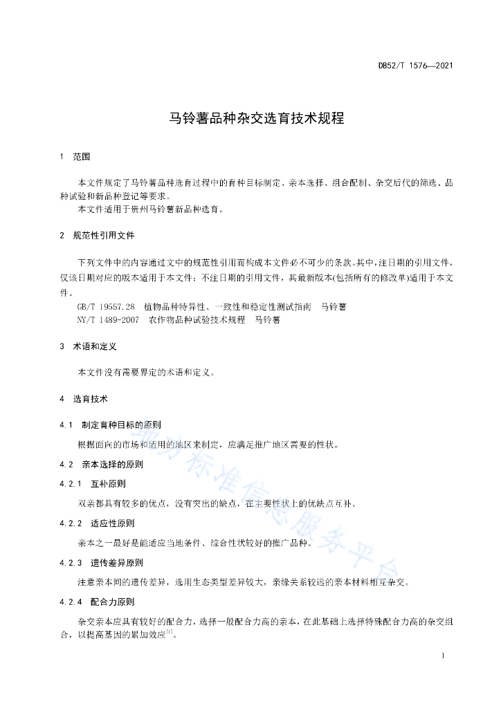 DB52/T 1576-2021 马铃薯品种杂交选育技术规程